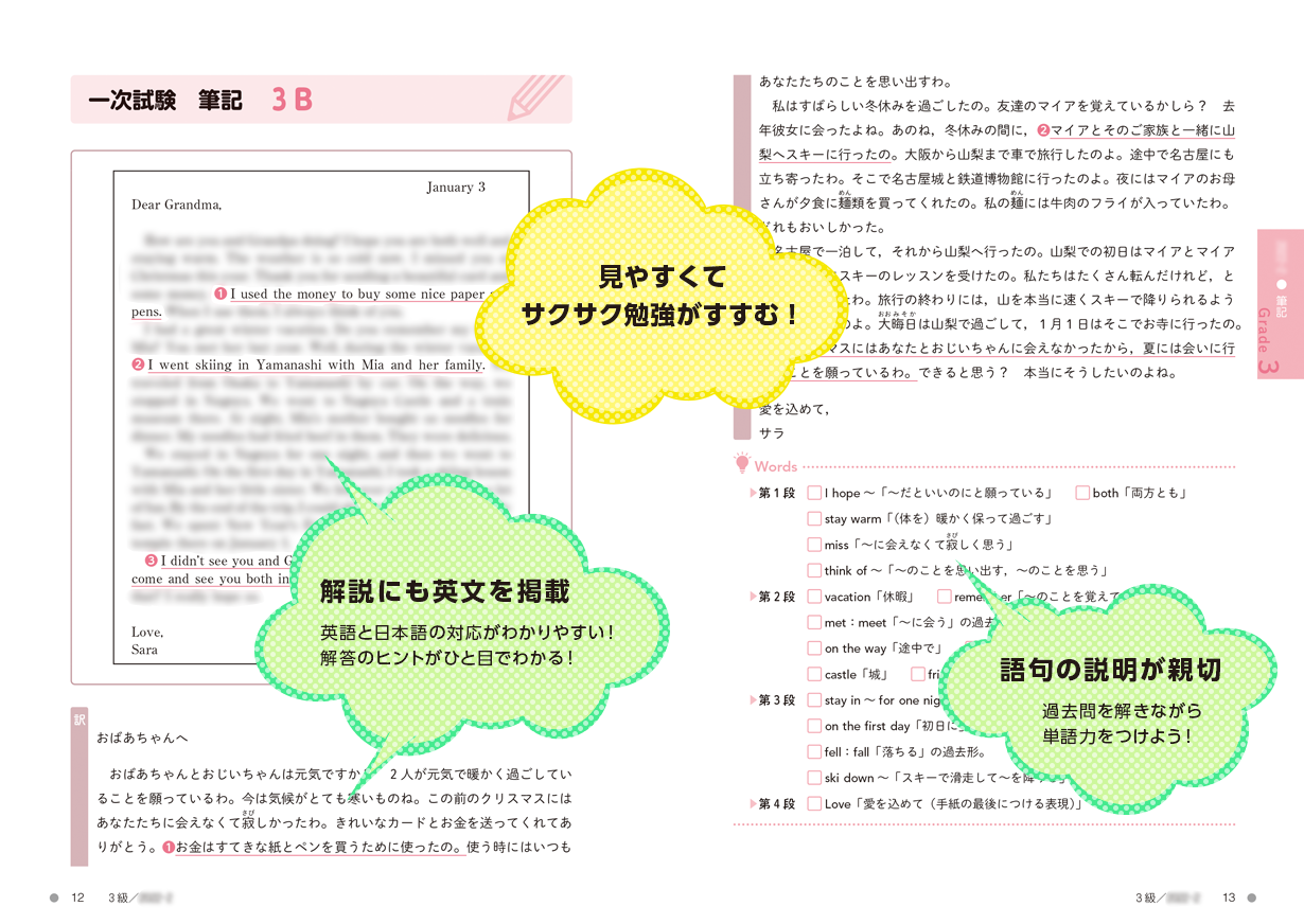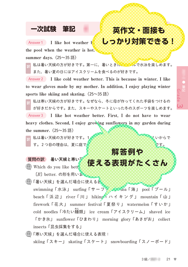 3級合格の壁は、英作文と面接! ていねいなレクチャーでバッチリ準備できます。