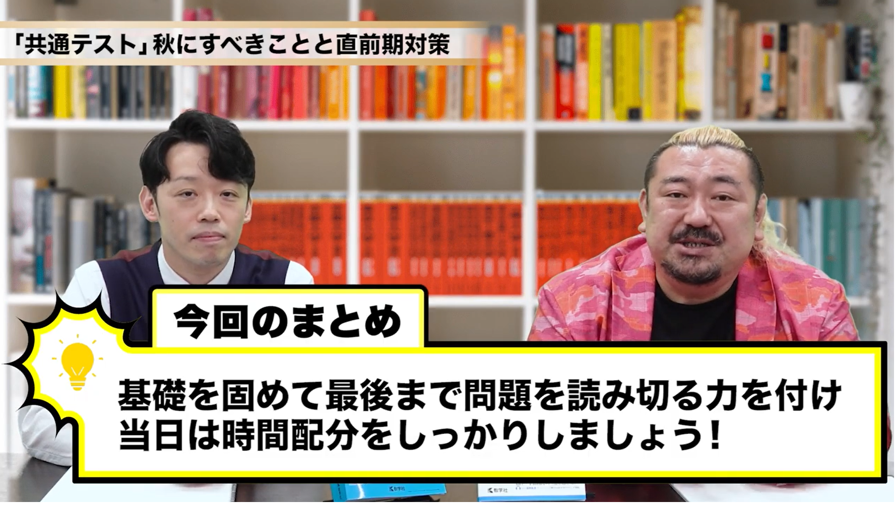 山添 固くてちょっとつまんないかなって感じですかね、個人的にはね。まぁでも、本当に共通テストはすごく頑張ってバランス良くね、受験生の力を問うように作られていると思いますので、ぜひそれに応えられるように、本当に地道で当たり前のことをしていくしかないと思うんですよね。テクニックとかなくて、とにかく最後まで読み切る力、解ききる力をつけていただければと思います。ということで共通テストのお話は以上です。ありがとうございました。